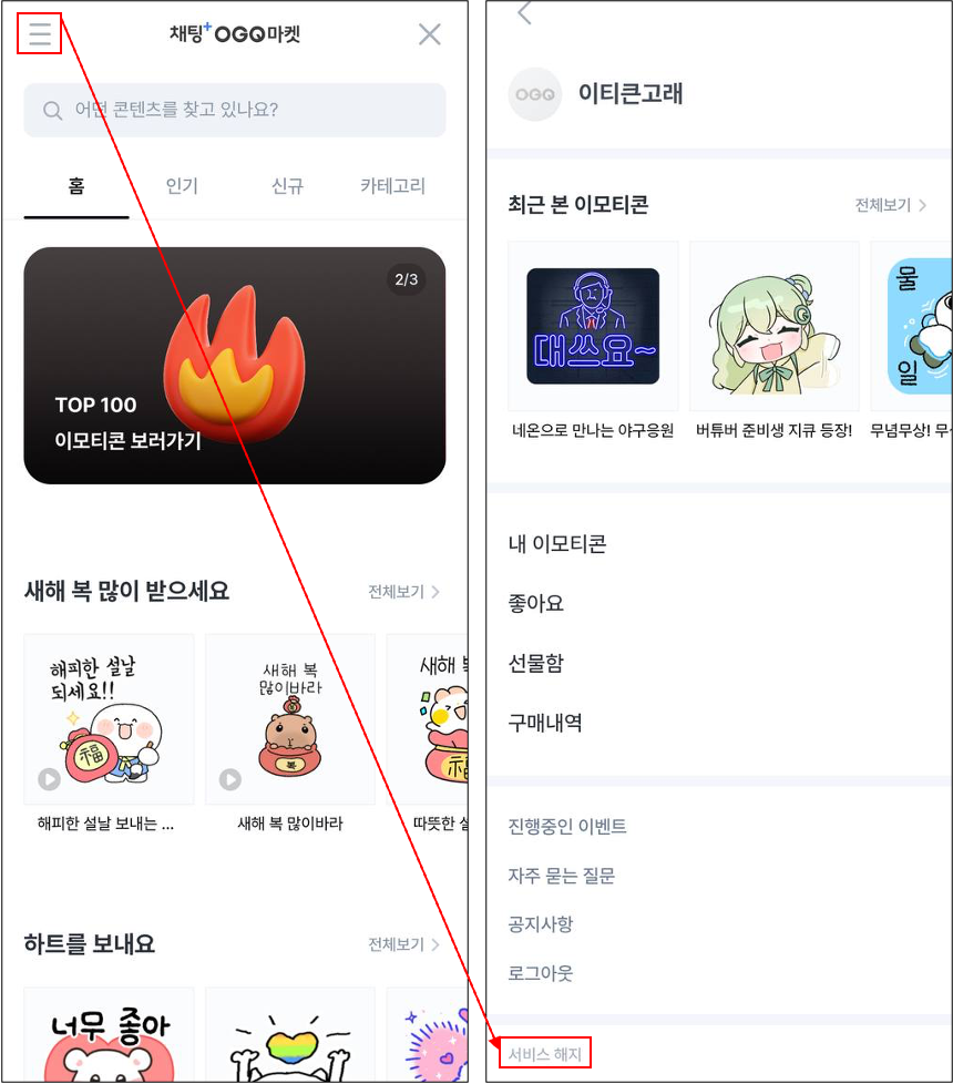 ※ 서비스 해지 시 채팅+ OGQ마켓 이용이 불가합니다.