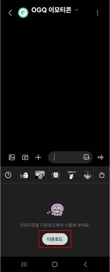 2. 채팅+ OGQ마켓 접속 > 내 이모티콘에서 다운로드하기